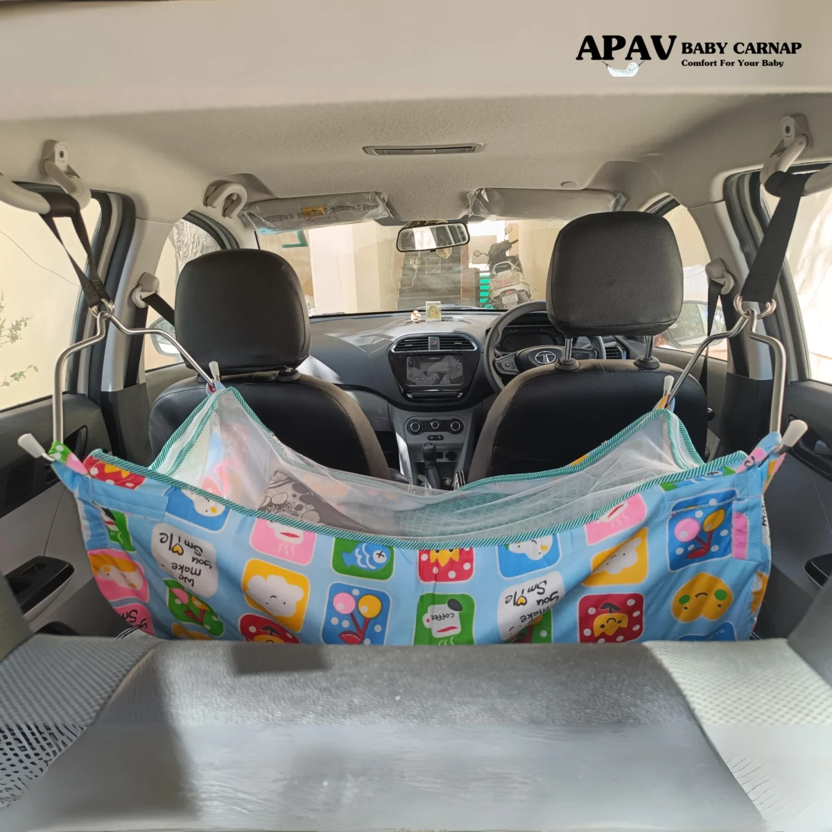 APAV Car Cradle For 0 To 3 Year Baby | Cotton Travel Swing for infants/New Born Baby | Portable Hanging Cradle for Safe Naps | Car Jhula with Mosquito Net | for Road Trips & Car Naps | Swing