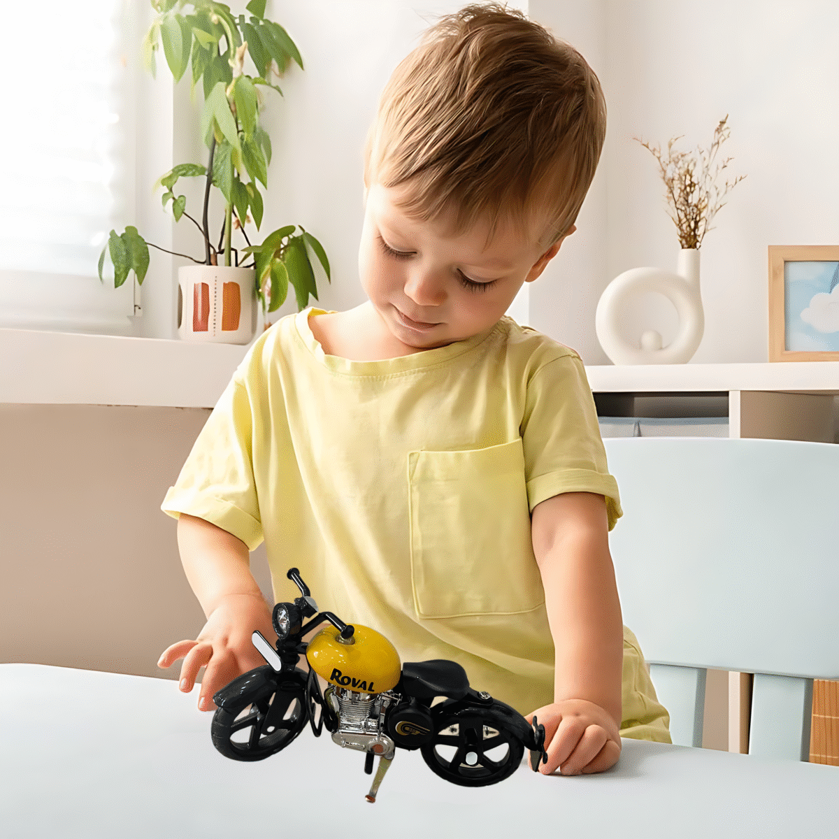 APAV Die Cast Metal Bullet Bike Motorcycle Scale Model Prototype Miniature Showpiece Toy with Side Stand for Birthday Gift I Kids I Adult(Yellow)