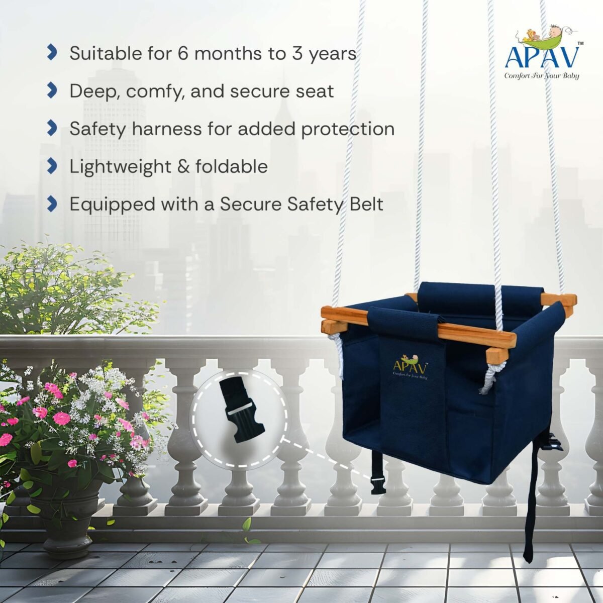 APAV Baby Swing for Kids | Hanging Jhula for 6 Months to 3 Years | Indoor Outdoor Zula Seat | Supports Up to 25 Kg | Polyester, 9 Inch (Blue) (Only Zula (Swing))