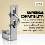 - Universal Compatibility: Fits 1/2-inch plumbing pipes and supports both short and long frame solar panels for versatile application.