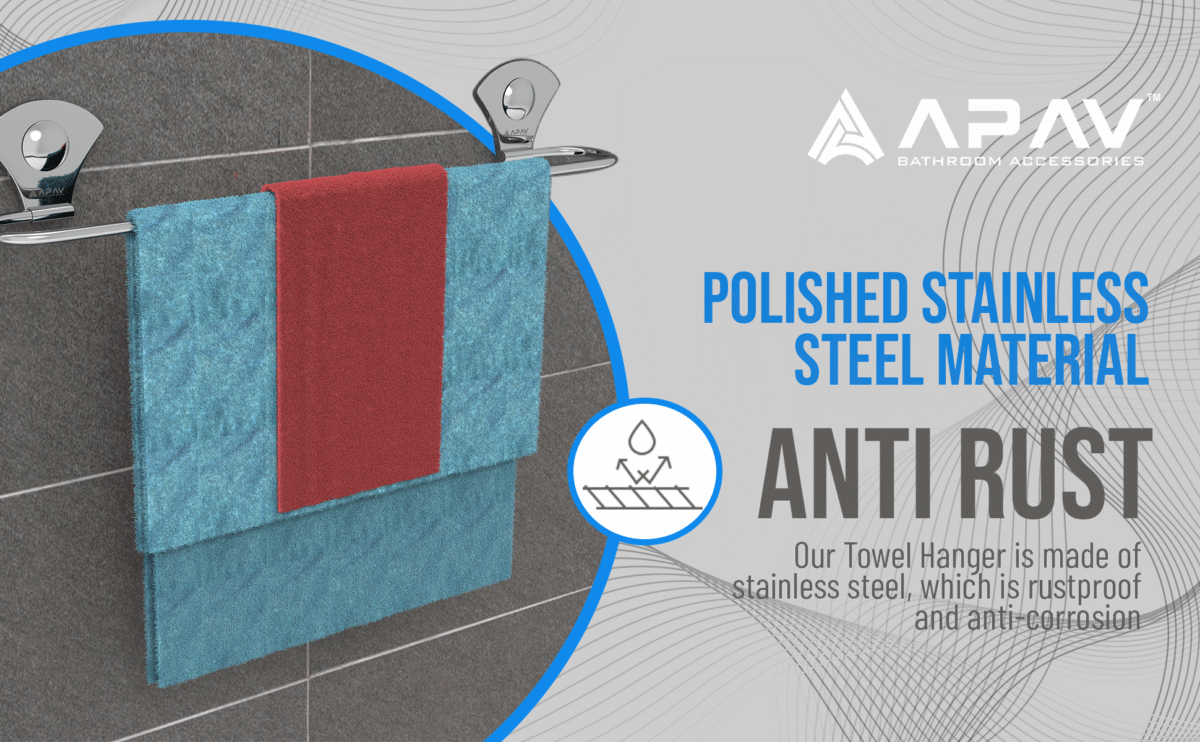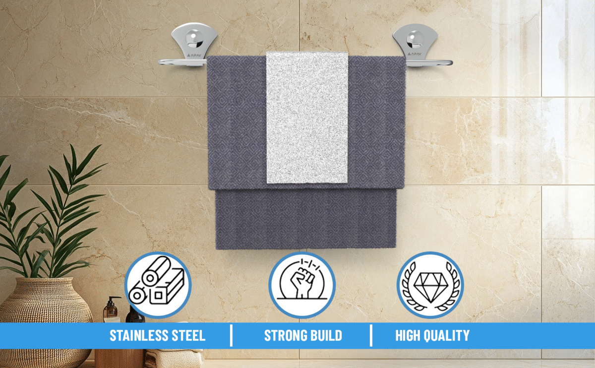 APAV Stainless Steel Towel Rack for Bathroom Wall-Mounted Hanger Accessories for Bathroom, Kitchen, and Bedroom | 24-Inch Stylish Towel Hanger (Pack of 1)