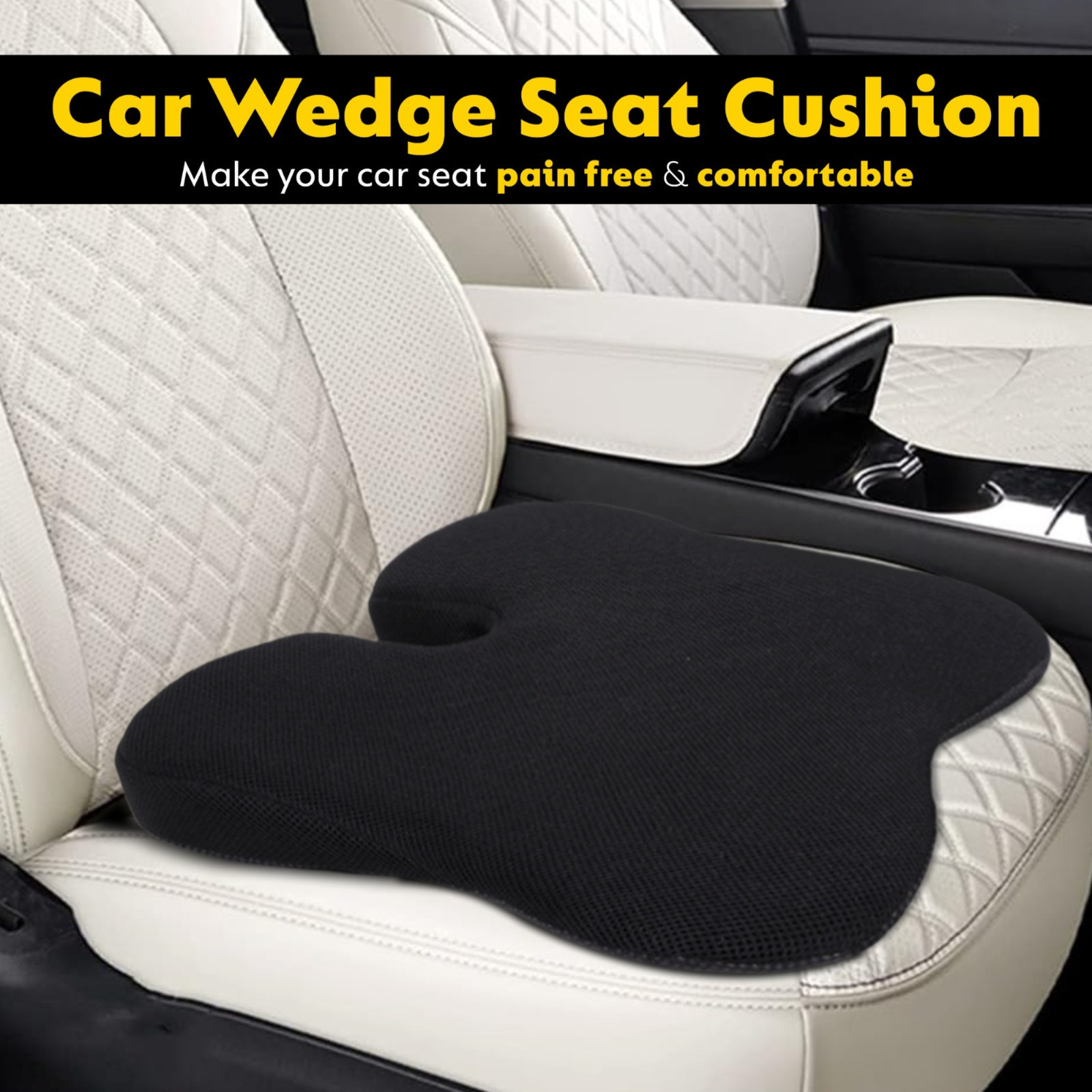 APAV Car Wedge Seat Cushion | Memory Foam Ergonomic Support for Hip, Back & Sciatica Pain Relief | Multipurpose for Office, Chair & Travel – Black (Car Wedge Seat Cushion (Black))